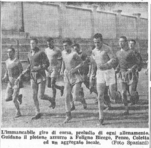 Immagine:Trevi ritiro agosto 1949.jpg|In quest'altra foto più allargata sono presenti anche Furiassi, Fiezzi (mass.), Alzani e Flamini (sulla sinistra) e Sentimenti IV (seduto) |