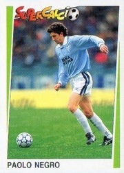 Paolo Negro è un forte laterale, abile sia in marcatura che in appoggio. Spesso, per la sua poliedricità, è stato utilizzato da Eriksson anche da centrale di difesa. Ha un buon colpo di testa e un tiro non precisissimo ma potente. Ciò gli ha consentito di segnare diverse reti. Con le sue lunghe falcate (m 1,82, kg 73), macina la fascia con continuità e allo stesso tempo non dimentica i compiti difensivi. Il suo carattere e alcune prese di posizione rigide gli hanno procurato alcuni problemi con allenatori e presidenti.