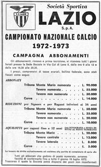 La campagna abbonamentiUn abbonamento in "Tribuna Tevere Numerata"Un abbonamento in "Tribuna Tevere Non Numerata"Un abbonamento in "Curva"Retro di un abbonamento in "Curva"