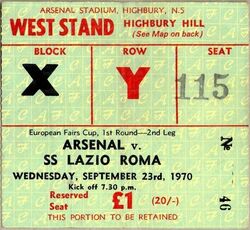 | [[Image:23set70tk.jpg|250px]] {{-}} Coppa Delle Fiere. Arsenal-Lazio |