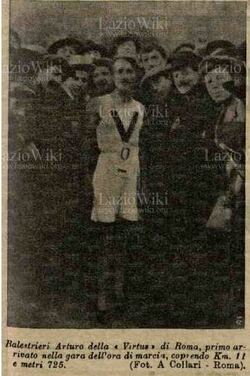 [[File:abora.jpg|thumb|right|250px|Arturo Balestrieri il 27 dicembre 1906. Con la maglia della Virtus vince una gara sull'ora di marcia a Villa Umberto I battendo avversari venuti a Roma da tutta Italia]] |