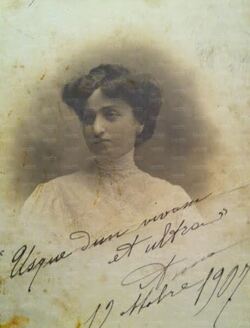 [[File:GALILEO11.jpg|thumb|left|250px|Anna Tobia nel 1907 con una romantica dedica in Latino ("Usque dum vivam et ultra" ''Fino a quando vivrò ed oltre'') del marito Fondatore Galileo Massa]] |