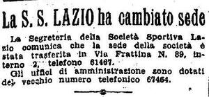 La S.S. Lazio rimase in Via Frattina dal [[1934]] al [[1958]]. |
