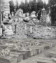 [[image:roma_brucia2.jpg|180px|thumb|left|Il cimitero del Verano distrutto dalle bombe e le bare dei civili morti]] |