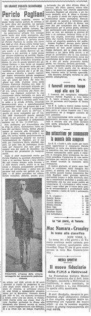 Da "La Stampa Sportiva" del 26/03/1905: Pagliani vince una corsa podistica di resistenza sulla distanza di 20 km