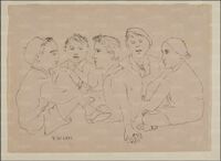 [[File:sclavi disegno milano.jpg|thumb|right|200px|Un altro disegno che LazioWiki ritiene appartenente al romanzo "...raccoglie, fugge, centra...". E' conservato a Milano al Gabinetto dei Disegni e, come gli altri a corredo del romanzo è eseguito con una tecnica particolare. L'opera catalogata nell'inventario Nicodemi con il titolo di "Gruppo di ragazzi seduti" e con la dicitura "disegno a matita, eseguita su carta bianca con ricalco di carta carbone" è, invece, una composizione di figure realizzata con la tecnica del monotipo a olio la cui esecuzione consiste nel creare il disegno sul verso del foglio mediante uno strumento appuntito, in questo caso ancora visibile è il tratto dell'incisione con una punta d'argento. Il foglio viene poi appoggiato su una matrice preparata a olio, che a sua volta imprime il tratto sulla carta. L'utilizzo di tale tecnica dà come risultato un'estrema sintesi della linea. Nel disegno, infatti, un segno nitido e continuo descrive cinque giovani figure, intente a dialogare fra loro]] |