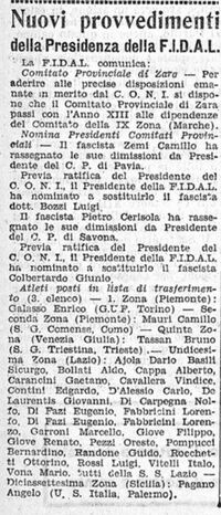 Nolfo di Carpegna con i compagni di squadra e di ideali politici Cavallera e Contini è messo in lista di trasferimento dalla S.S. Lazio nel dicembre 1934 a causa dello scioglimento della Sezione di Atletica Leggera. Da "Il Littoriale" del dicembre 1934