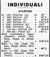 di Carpegna si aggiudica il primo posto con la staffetta 4x100 agli Agonali di Roma nell'aprile 1934. Da "Il Littoriale"