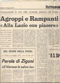 | ⚫ | [[Lenzini Umberto|Lenzini]] rifiuta una super offerta per [[Re Cecconi Luciano|Re Cecconi]], impegnato con la Nazionale ai [[X Coppa del Mondo - Germania Ovest 1974|Mondiali di Germania]], da parte del [[Torino AC|Torino]] che mette sul piatto i giocatori Agroppi e Rampanti più un bel pò di milioni in contanti. Sul forte centrocampista c'è anche il veto di [[Maestrelli Tommaso|Maestrelli]] e quindi sono inutili i tentativi al rialzo dei granata. |