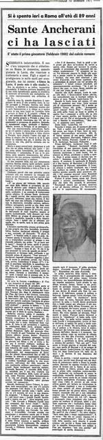 Dal Corsport: l'annuncio della morte di Sante Ancherani
