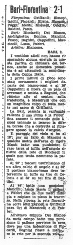 Il campionato seguente, quello del 1939/40, lo vede nella squadra delle riserve del Bari fino quasi alla fine del campionato, quando gioca le ultime 5 partite contribuendo al raggiungimento della salvezza e segnando il suo primo goal in Serie A nell'ultima partita di campionato contro la Fiorentina. Una bella soddisfazione per un ragazzino che si affacciava da poco tempo nel proscenio della massima serie.