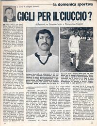 Mercoledì Valcareggi sarà a Roma per controllare la Lazio e in particolare Re Cecconi, candidato a sostituire Benetti nel confronto con gli inglesi. Anche Furino à in ballottaggio per il posto di mediano, considerato che le ultime prestazioni di Benetti non sono apparse esaltanti.