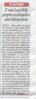 Il 6 dicembre 2010 Il Messaggero, a firma del suo caporedattore dott. Vincenzo Cerracchio, dedica l'intera pagina 30 a LazioWiki e alle scoperte fatte sui Fondatori e Pionieri. Sempre il Messaggero nel giorno del 111° anniversario riporta a pag. 34 la notizia di altre scoperte fatte da LazioWiki sugli atleti biancocelesti Caduti durante i conflitti mondiali.