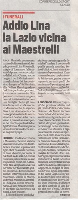 Da sposa di Maestrelli e mamma di quattro figli, Lina divenne negli anni 70 la sposa della Lazio e la seconda mamma per tanti giocatori della squadra. Qualcuno ha scritto addirittura che un angolino dello scudetto biancazzurro le appartiene di diritto. Di sicuro ha contribuito alla serenità e all'armonia che hanno accompagnato l'impresa laziale. Era lei a raccogliere e smontare le ansie di "Masino"; lei a placare le sfuriate di Giorgio Chinaglia che per mesi fu accolto in casa Maestrelli per sfuggire alle minacce dei romanisti; lei a preparare le cene per Oddi, Pulici, Re Cecconi, amici giornalisti, amici tifosi; lei a convincere Massimo e Maurizio e persino il loro babbo che la scuola era più importante del campo d'allenamento e della Lazio. I due anni della malattia di Tommaso, la perdita di due figli, gli acciacchi dell'età hanno finito per condurla alla resa, ieri l'altro, tenendo per mano Massimo e Tiziana. Senza un lamento, come per tutta la sua vita. Forse con una punta di felicità. Chissà quante volte ha immaginato il momento in cui avrebbe potuto riabbracciare "Masino", Patrizia, Maurizio. Pensando che senza di lei avrebbero preso freddo o mangiato la pasta scotta.