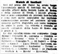 Il trafiletto de "Il Messaggero" del 20 luglio 1909. Si noti come l'ordine dei calciatori nelle due formazioni era scritto cominciando dall'ala sinistra per finire al portiere. Questa maniera di indicare i calciatori si mantenne sporadicamente fino all'inizio del secondo decennio del secolo. Tuttavia, in molti casi, l'ordine andava dal portiere all'ala sinistra. Nella formazione della Lazio sono presenti numerosi errori sia nella trascrizione dei nomi che nella loro esatta individuazione. A ciò si è posto riparo nel tabellino relativo alla partita