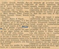 LAZIO: Girardi, Masiello, Bartolini, Gagliardi, Paparelli (80' Volpi), Marchetti, Pazzelli, Dolso, Lignini, Di Pucchio, Giammei (46' Brai). A disp. Amata. All. Lovati.