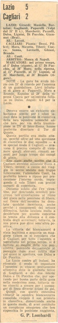 Sabato 12 novembre 1966 - Roma, Campo Tor di Quinto - Lazio-Cagliari 5-2