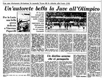 Non ha reagito all'autorete di Verza (è la quinta che la Juve subisce all'Olimpico in partite disputate contro i laziali e i romanisti) con il piglio dovuto, continuando a trascinare la palla con movimenti rallentati e dunque scontati e prevedibili; c'era anche una lentezza strana nel concepimento di un concetto di gioco. Se i bianconeri avessero fatto ricorso alla convinzione messa in pratica nella ripresa forse avrebbero ottenuto quel pareggio che sarebbe stato il risultato più equo in un match del genere. Ieri alla Juventus sono mancati soprattutto Bettega (che però ha l'attenuante di aver giocato il secondo tempo con una distorsione ad una caviglia) e Causio, elementi troppo importanti nell'economia della squadra: servono a disorientare i piani dell'avversario ed a stimolare i giovani colleghi. I due non sono risultati utili sia nella prima che nella seconda funzione.