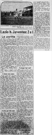 Nessun dubbio può ormai sussistere sull'attuale grado di forma di cui la Lazio aveva già dato qualche saggio nello ultime settimane. La bella partita degli azzurri ne è stata la prova. La difesa e la seconda linea possono dividersi in parti eguali gli allori della giornata, giacché il loro rendimento superiore ad ogni aspettativa ha rappresentato il principale e fondamentale elemento tecnico del successo. Anche la linea attaccante si è distinta per quanto il reparto di sinistra sia apparso meno efficace del solito. Fra i migliori vanno citati Pastore e Ziroli. Energico e preciso l'arbitraggio di Gonani. La fulminea partenza della Lazio metteva subito in difficoltà la difesa torinese che si salvava in corner al secondo minuto. La reazione dei bianconeri era per altro pronta e serrata: questa volta toccava ai romani di schierarsi in difesa dinanzi alla rete di Sclavi per due calci d'angolo quasi consecutivi. Al 19' la Lazio usufruiva di un calcio di punizione nel pressi dell'area di rigore. La palla respinta a breve distanza dai difensori juventini veniva ripresa da Foni che girava pronto a Pastore; il tiro di questi batteva irresistibilmente Combi; al 39' un nuovo calcio d'angolo veniva accordato alla Lazio; poi a chiusura del primo tempo Combi si produceva in una difficile parata su un violento tiro di punizione di Foni. Anche la ripresa era iniziata dalla Lazio a grande andatura. La Juventus ripiegava subito in corner, ma organizzava immediatamente il controattacco. Al 5' minuto un'azione confusa di tutto il trio attaccante permetteva a Ferrari di operare un forte tiro da lontano, che sorprendeva Sclavi.