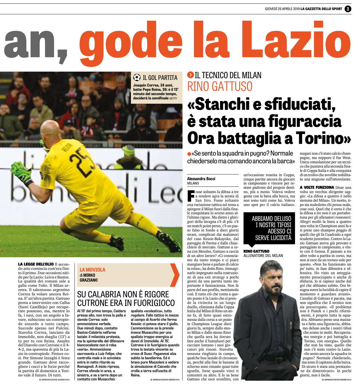 La Gazzetta dello Sport del 25/04/2019