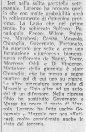 Giovedì 15 gennaio 1970 - Roma - Lazio-Lazio Juniores 7-0