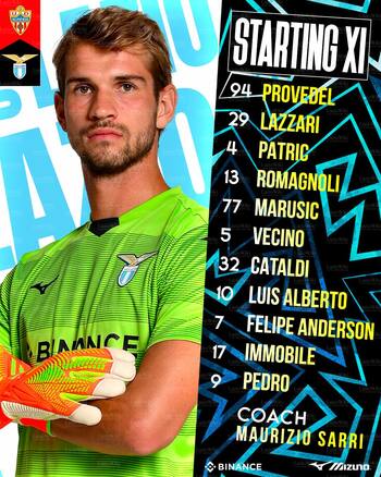 LAZIO: Provedel, Lazzari (75' Radu), Patric (80' Gila), Romagnoli, Marusic, Vecino (46' Milinkovic), Cataldi (64' Marcos Antonio), Luis Alberto (64' Basic), Felipe Anderson (70' Romero), Immobile (75' Cancellieri), Pedro. A disposizione: Maximiano, Adamonis, Kamenovic, Bertini. Allenatore: Sarri.