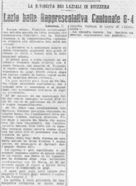 Note: tempo bello, terreno in ottime condizioni. La partita si è svolta nel nuovo stadio del Losanna che ha scelto la Lazio per l'inaugurazione. Presenti molte autorità elvetiche ed italiane. Prima della partita sono stati suonati gli inni nazionali.