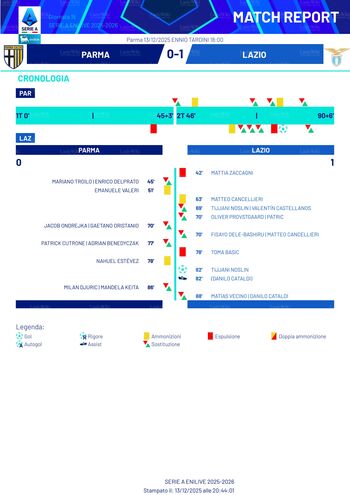 Sabato 13 dicembre 2024 - Parma, stadio Ennio Tardini - Parma-Lazio 0-1