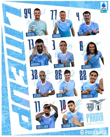 ► Per questa partita il tecnico biancoceleste Maurizio Sarri ha convocato i seguenti calciatori: