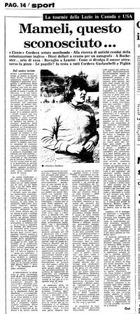 La Lazio è rientrata stamane dal Nord America dove ha effettuato una tournée vincendo quasi tutti gli incontri programmati, compreso quello con i Cosmos di Chinaglia. Un solo pareggio sulle 6 partite disputate. La comitiva era guidata dal presidente Lenzini e dall'allenatore Vinicio. Durante il soggiorno negli Stati Uniti erano rimbalzate in Italia alcune dichiarazioni del presidente, su probabili cessioni di uomini importanti come D'Amico, Pulìci, Manfredonia, che avevano suscitato la vivace reazione del trainer e del portiere titolare. Ma Lenzini pare che si sia affrettato a rimangiarsi tutto dopo la secca replica di Vinicio intenzionato ad impedire la partenza di atleti che considera incedibili.