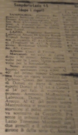 Venerdì 23 febbraio 1974, La Spezia, stadio A. Picco - Lazio-Sampdoria 0-0 - 5-4 (d.c.r.)